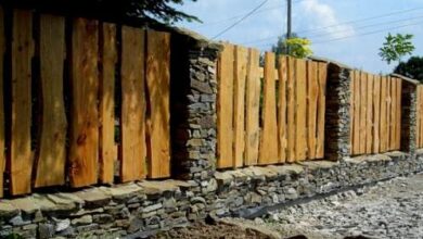 - На дно ямы сантиметров на 20–30 насыпается смесь песка и щебня, на эту насыпь ставятся столбы, и засыпаются щебнем, камнем, битым кирпичом и землей. При засыпании периодически проверяйте уровнем положение стойки. Она должна быть строго вертикальной, от этого зависит дальнейшее будущее как ворот, так и всего забора.